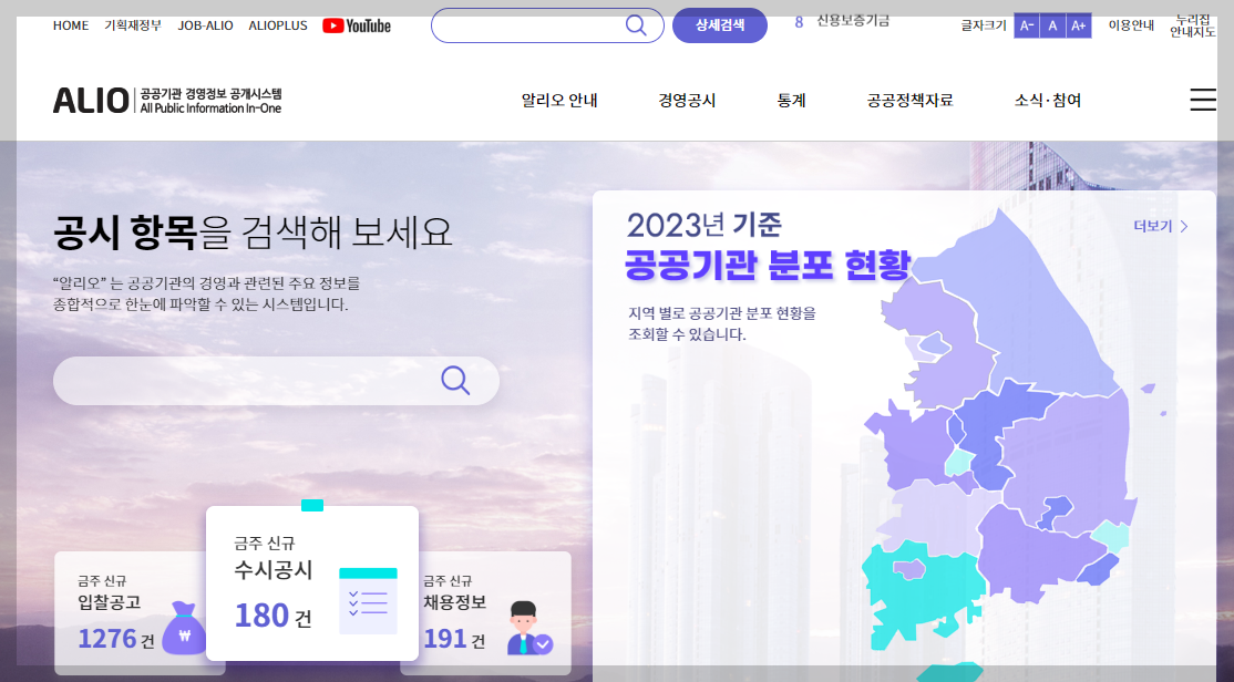 우리나라 공공기관에 대한 자세한 정보는 ALIO(https://www.alio.go.kr/main.do)에서 확인하실 수 있습니다.